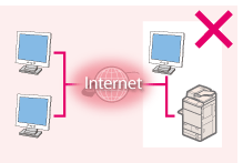 전역 IP 주소가 할당되면 프린터/복합기가 공개적으로 개방되고 인터넷을 통해 액세스할 수 있습니다. 따라서 외부 네트워크로부터 무단 액세스로 인한 정보 유출 위험이 증가합니다. 반면에 개인 IP 주소가 할당되면 프린터/복합기가 외부 네트워크로부터 폐쇄되고 사내 LAN 등 LAN 내의 사용자만 액세스할 수 있습니다.