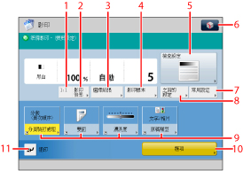 可以從「常規影印基本功能」螢幕和「快速影印基本功能」螢幕執行相同的操作。從「設定/註冊」螢幕設定要顯示的螢幕。(請參閱「切換基本影印功能螢幕」)