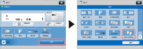 即使安裝了裝訂分頁機,也不能將[分頁裝訂處理]中的任何模式與[投影片封面頁]一起使用。