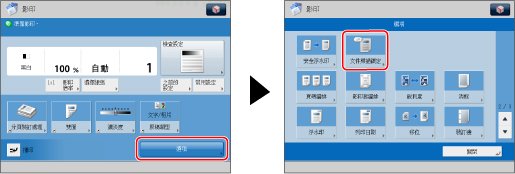 影印設定了[密碼認證]或[使用者認證]的文件時,使用首頁上的嵌入資訊進行認證。在下列情況下,工作會被取消: