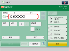 指定傳真號碼。也可以連續指定幾個號碼,並在一次操作中將原稿傳送給幾個接收者(循序廣播)。
