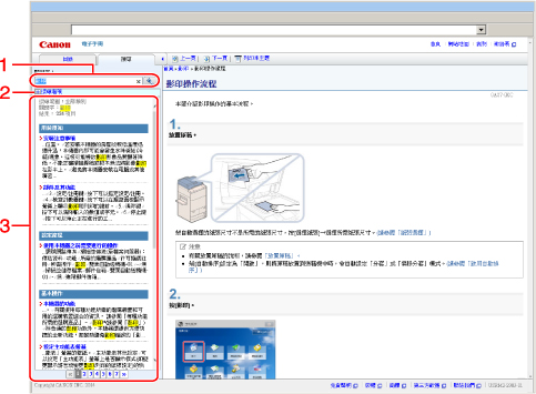 顯示關鍵字的搜尋結果。 若搜尋結果超過10項,可以透過按一下[上一頁]、[下一頁]或位於結果下方的數字查看其他結果。 |