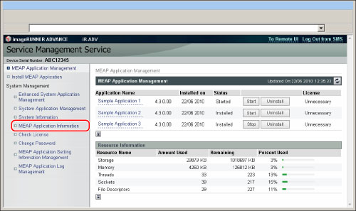 按一下[MEAP Application Information](MEAP應用程式資訊)。