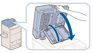 小心開啟文件掃描蓋板,以免刮傷原稿台玻璃。