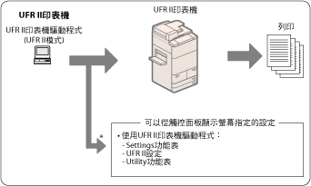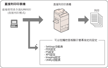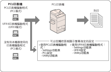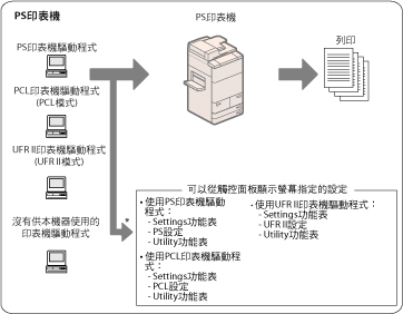 UFR II、PCL、PS和直接列印印表機操作的差異性