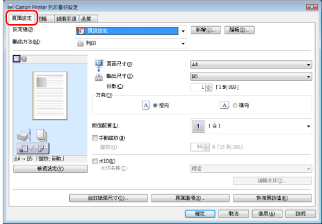 按一下[頁面設定]。