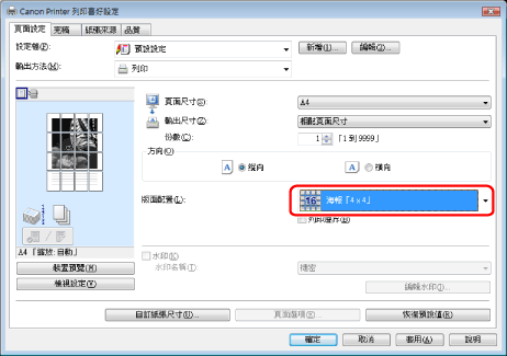 從[版面配置]選擇[海報「N×N」](N x N表示影像列印的頁數(縱向 x 橫向))。
