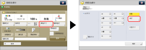 掃描無法使用[自動]偵測的原稿時,可以手動指定掃描尺寸。也可以註冊指定的掃描尺寸。