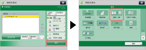 將原稿放置到原稿台玻璃上。原稿放置在送稿機中時,無法使用[書本