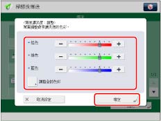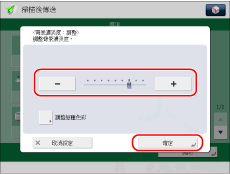 若透過按<背景濃淡度>的[調整]調整背景濃淡度,則會取消[自動]設定。同樣,若在[調整]中進行手動調整時按[自動],則會取消所作的調整。本機器自動調整濃淡度以與背景一致。