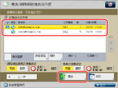 若將[限制新接收者]中的某個位址類型設定為「開啟」,則不能輸入該類型的新接收者。透過使用[通訊錄]中的「本機通訊錄」、「遠端通訊錄」、「LDAP伺服器」或按[單鍵]中的單鍵按鈕選擇已儲存的接收者。(請參閱「限制傳送功能」)