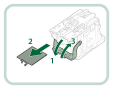 關閉蓋板後,裝訂機單元可能會自動執行「空」裝訂操作以定位裝訂針。