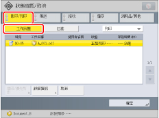 可以從觸控面板顯示螢幕或從「狀態確認/取消」螢幕取消列印已儲存的檔案。