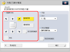 也可以選擇在[註冊頁碼編排/浮水印字元]中註冊的文字。(請參閱「註冊/編輯/刪除頁碼和浮水印的使用者定義文字」)