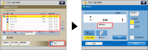 該模式只能用於列印儲存在「進階郵件信箱」、網路上其他imageRUNNER ADVANCE機器的「進階郵件信箱」或記憶介質中的檔案。