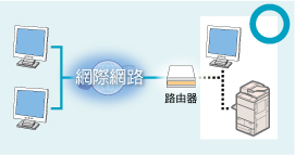 若指定「全域IP位址」,印表機/多功能機器會對外共用並可以透過網際網路存取。因此,增加由於外部網路未經授權導致的資訊洩漏風險。另一方面,若指定了私人IP位址,印表機/多功能機器就會封閉在區域網路中且只有該區域網路(例如公司內部的區域網路)中的使用者才可以存取。