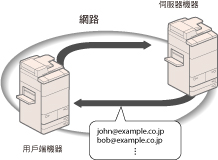 本機器可以作為用戶端機器存取網路上的伺服器機器以其「通訊錄」搜尋/指定接收者。