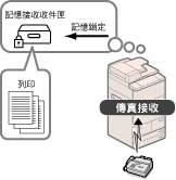 可以設定將已接收的傳真文件儲存在「記憶接收收件匣」中而不列印。然後,可以在列印或轉寄至其他接收者前檢查傳送者資訊及每個文件包含的頁數。