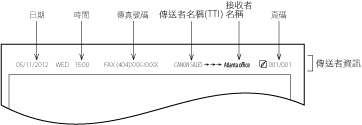 要顯示/列印「傳送者名稱」而不是單位名稱,請設定「選項」中的[傳送者名稱(TTI)]。(請參閱「傳送傳真時選擇傳送者名稱」)