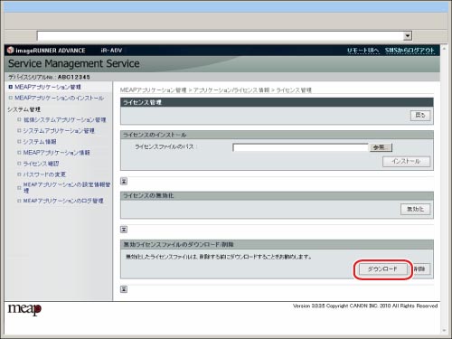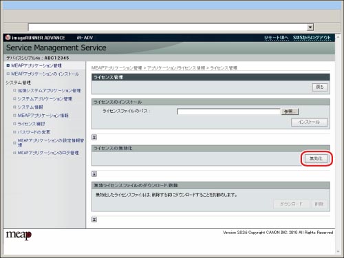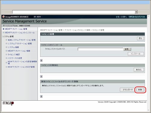 無効化したライセンスファイルを削除すると、再び本体からダウンロードすることはできなくなります。