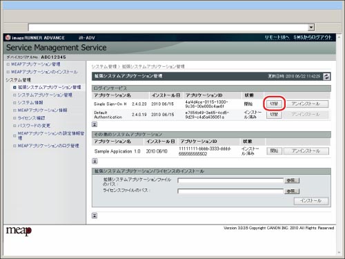 工場出荷時は、Default Authentication(部門別ID 管理)を使用できる状態になっています。SSO-Hを使用する場合は、変更する前に[部門別ID管理]を「OFF」にしてください。部門別ID管理の設定については、「部門別ID管理を設定する」を参照してください。