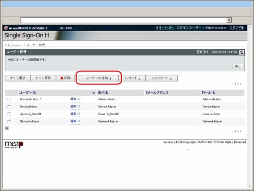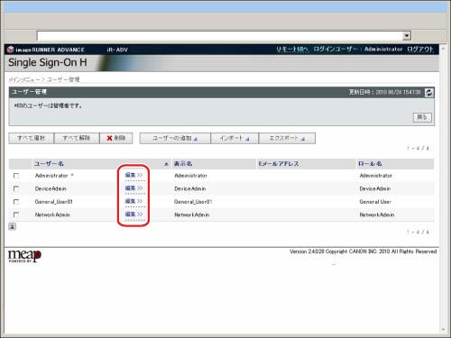 システムアドミニストレーター(Administrator)のみ、ユーザー情報を編集できます。