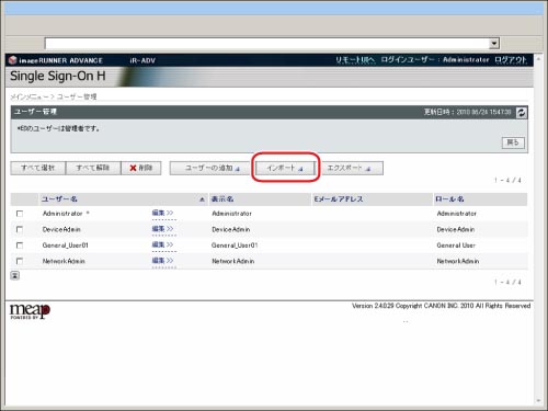 インポートするユーザーは、一般ユーザーとして登録/上書きされます。