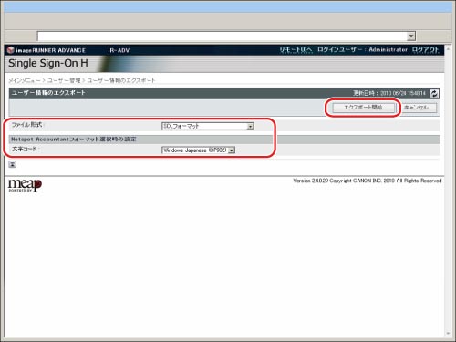 NetSpot Accountant 4.x/imageWARE Accounting Manager専用のフォーマットで作成されたユーザー情報をエクスポートします。ファイルの拡張子は「csv」です。