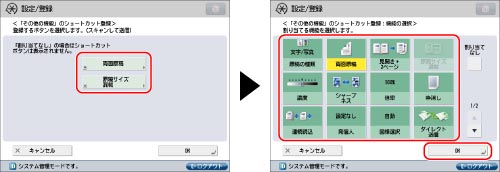 ショートカットボタンを押す→ショートカットボタンに登録する機能を選択→[OK]を押す