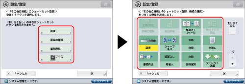 ファクス画面に表示するショートカットを登録します。[その他の機能]から、任意のボタンを4個まで登録できます。