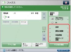 [ファンクション設定]→[送信]→[ファクス設定]を押す