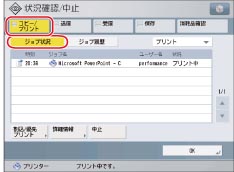 プリントを中止したジョブはプリントジョブ履歴の画面で「NG」と表示されます。