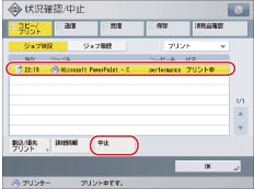管理者モードでログインしていない場合は、本人のジョブのみ中止できます。