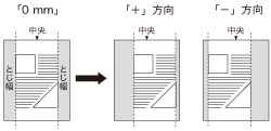 設定値で指定した値だけ、表面の印字位置を横方向または縦方向にずらして調整します。