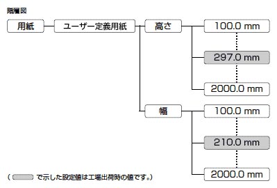 メニューの用紙グループの「原稿用紙サイズ」で[ユーザー定義用紙]を設定した場合、作図用紙の高さと幅を任意の長さで設定します。