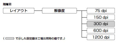 75 dpi、150 dpi、300 dpi、600 dpi、1200 dpi