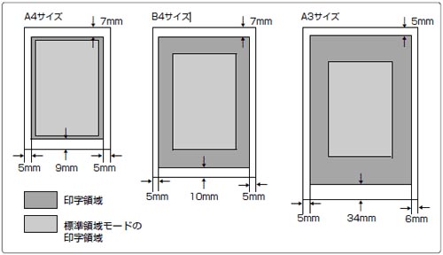 B4→A4縦(Fmode 7)は縮小率が大きいので、上下左右に大きな余白が空きます。このため、ワイド領域モードを有効に使用できます。
