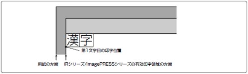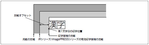 iRシリーズ/imagePRESSシリーズ/imageRUNNER ADVANCEシリーズの有効印字領域の左端から次の量だけオフセットした位置に、第1文字目を印字します。