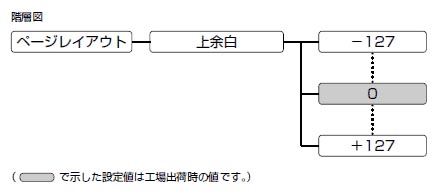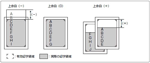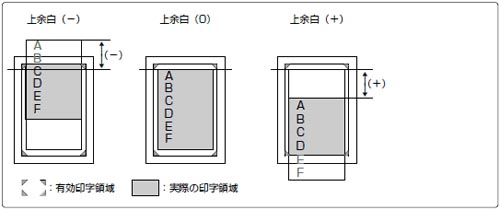 印字開始位置を下方にずらす場合はプラス(+)方向、上方にずらす場合はマイナス(-)方向になります。