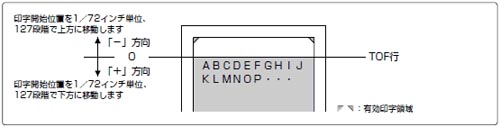 それぞれのページフォーマットで設定されているTOF行の上端を基準として、印字開始位置を上下方向にずらす量を255段階で指定します。