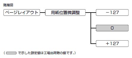 用紙の左端を基準として、印字位置を左右方向にずらす量を255段階で指定します。