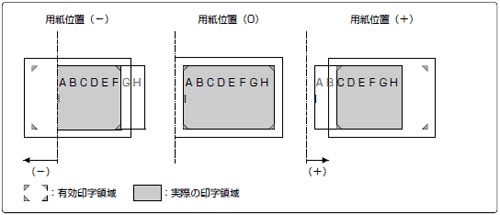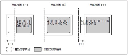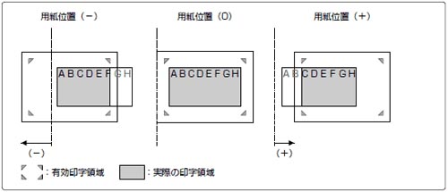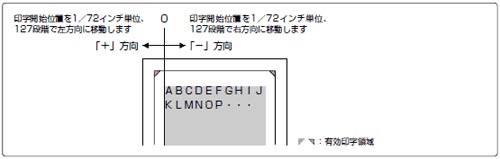 印字開始位置を左にずらす場合はプラス(+)方向、右にずらす場合はマイナス(-)方向になります。