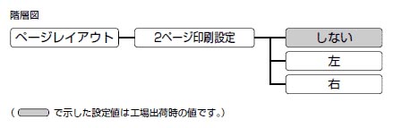 A4サイズまたはB5サイズで作成された印字データを、A3サイズまたはB4サイズの用紙に見開きで2ページ分ずつ並べて印字するかどうかを設定します。