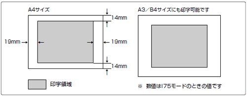 ただし、A3、B4サイズの用紙を使用しても、A4サイズのときと同じ縮小率で印字され、用紙のほぼ中央にレイアウトされます。