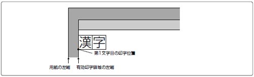 左端オフセット量は「用紙位置微調整」が初期値「0」の場合です。