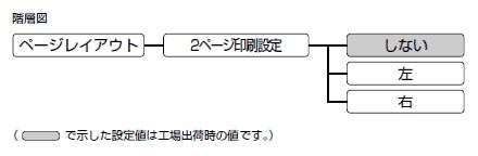 A4サイズまたはB5サイズで作成された印字データを、A3サイズまたはB4サイズの用紙に見開きで2ページ分ずつ並べて印字するかどうかを設定します。