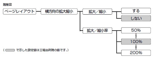 本項目を[しない]に設定した場合と、倍率を100%に設定した場合とでは、印字結果が異なることがあります。