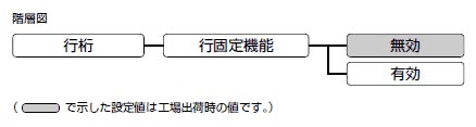 TOF行からページのボトム位置までの領域に印字する行数が決まっている場合、行固定機能を使用すると、その行数を指定するだけで改行ピッチを自動的に計算して設定することができます。ここでは、行固定機能を使用するかどうかを設定します。