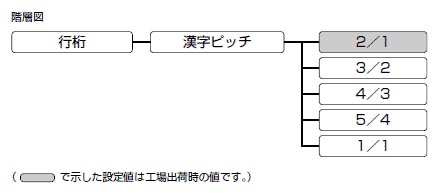 2バイトコード文字(漢字)の文字ピッチを1バイトコード文字(ANK文字)の文字ピッチの何倍にするかを設定します。