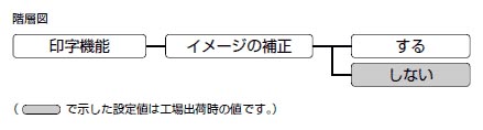 イメージデータを印字するとき、IBM5577とiRシリーズ/imagePRESSシリーズ/imageRUNNER ADVANCEシリーズとの解像度の違いから、イメージデータを拡大します。このとき、イメージの拡大にともなってイメージを補正するかどうかを設定します。